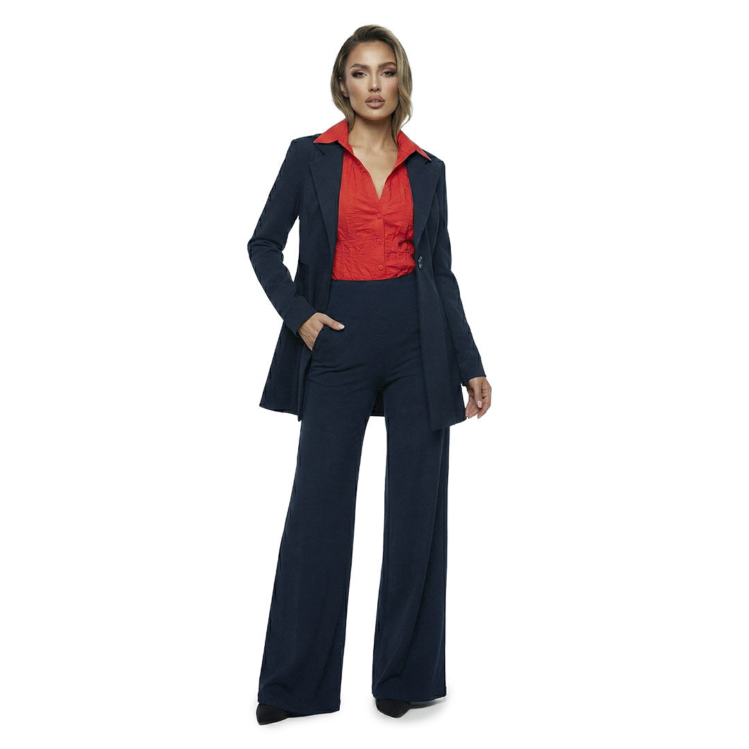 Wide leg, no pocket palazzo pants is modern & versatile. A perfect complement to your fashion collection. It specially goes well with our Zip or One button jacket . It...