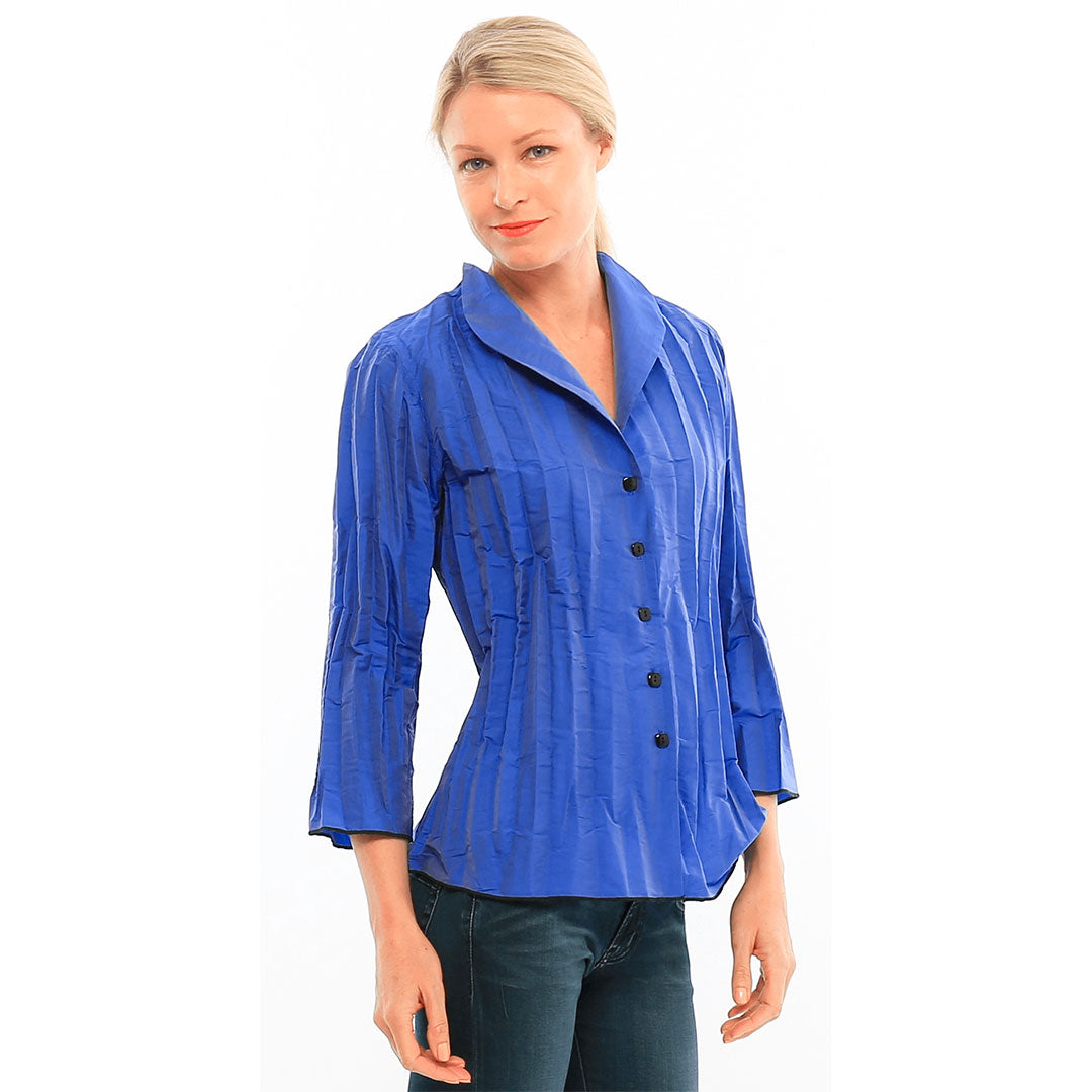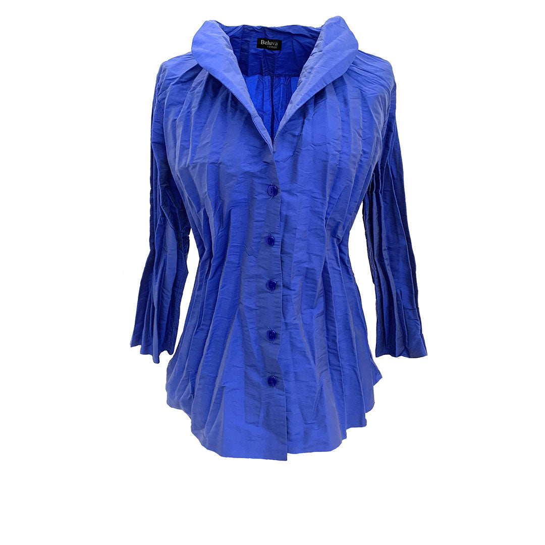 Our iconic pleated Pixley blouse is a must-have, with three-quarter sleeves, and a shawl collar.